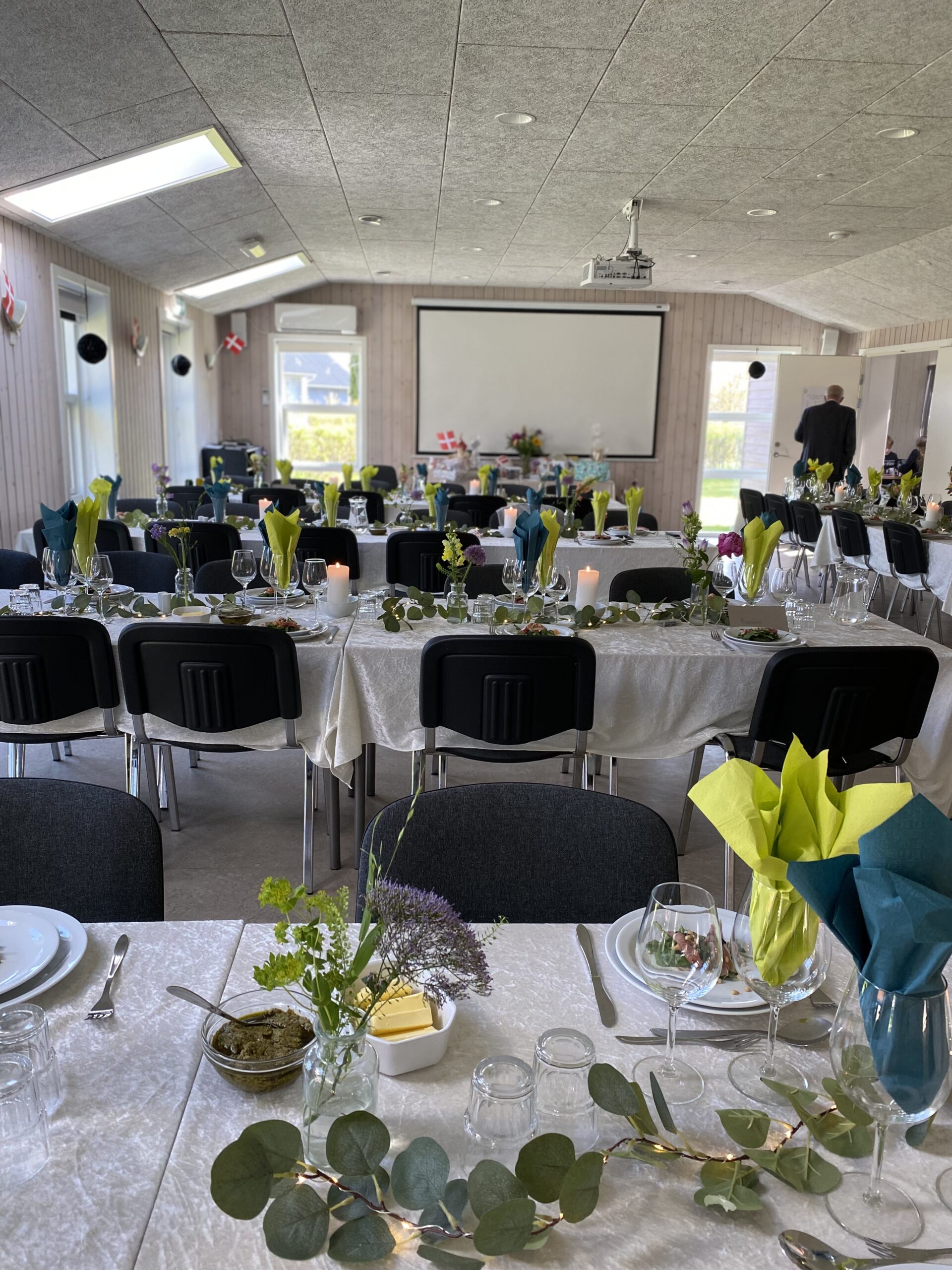 For at leje selskabslokalet kræver vi, at der samtidig lejes min. 3 feriehuse på 30 m2.